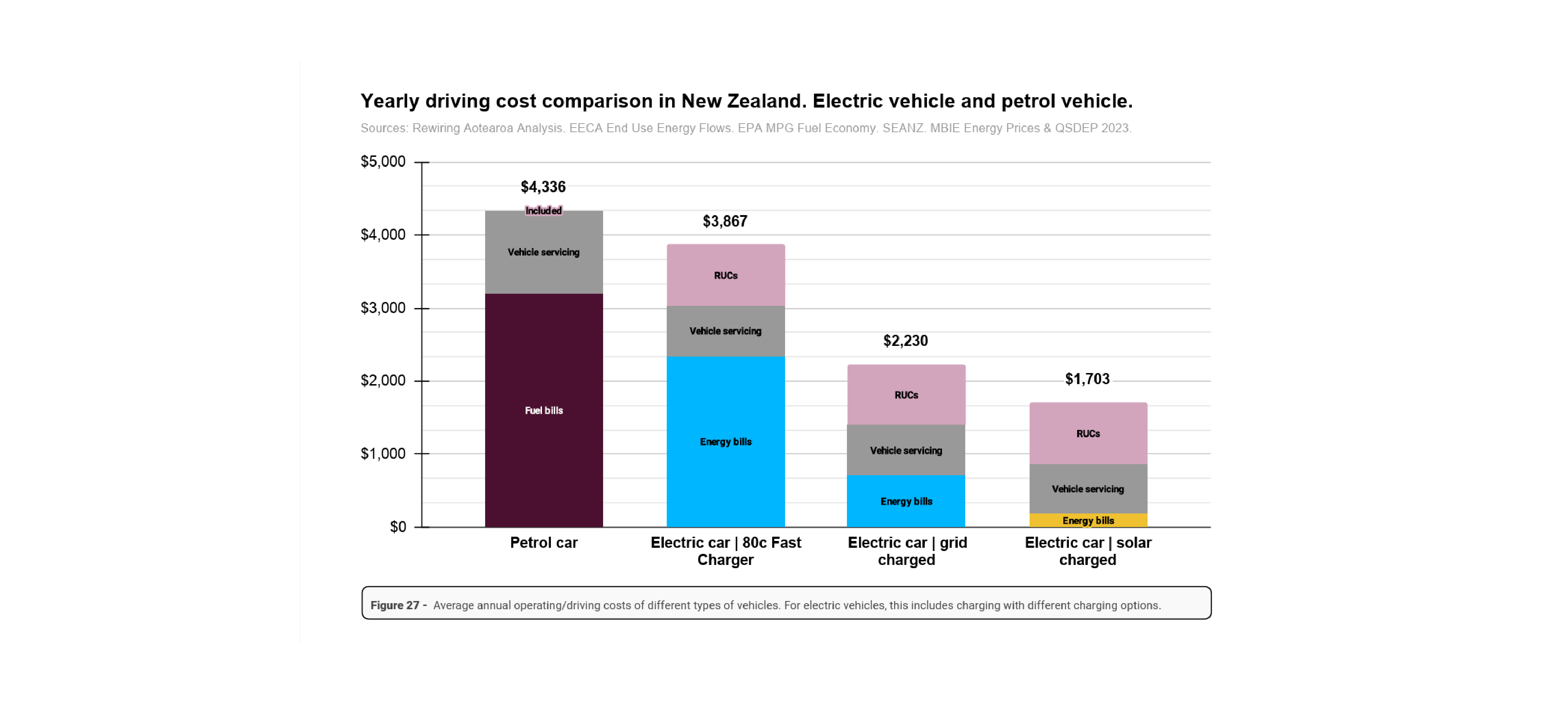 If you take a look at the yearly driving cost comparison from EECA’s ‘The economics of household electrification’ report it's easy to see how these savings add up over time. (You can read the full report here).